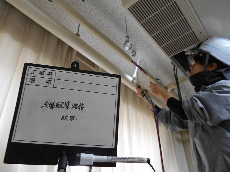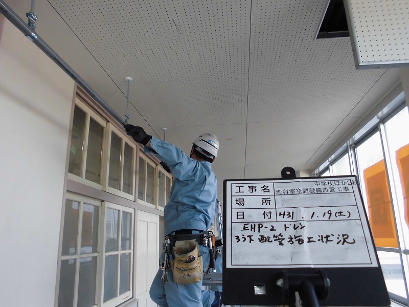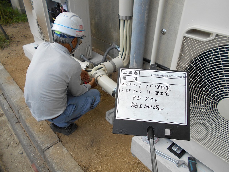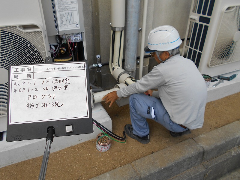 大阪市内の小中学校にて冷暖房機器設置工事を行いました。